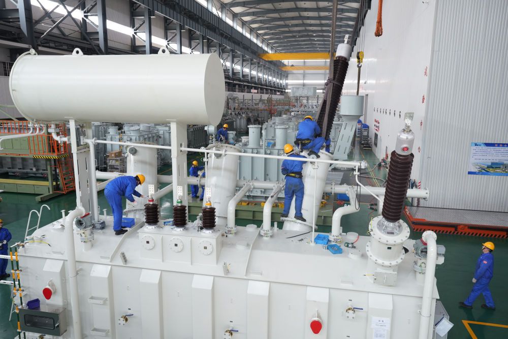 4月1日,正在浙江白云浙变电气设备无限公司,工做人员正在厂房拆卸22万伏特高压油浸式变压器。该公司输变电设备出口全球,一季度产值达2。2亿元。记者 翁忻旸 摄!