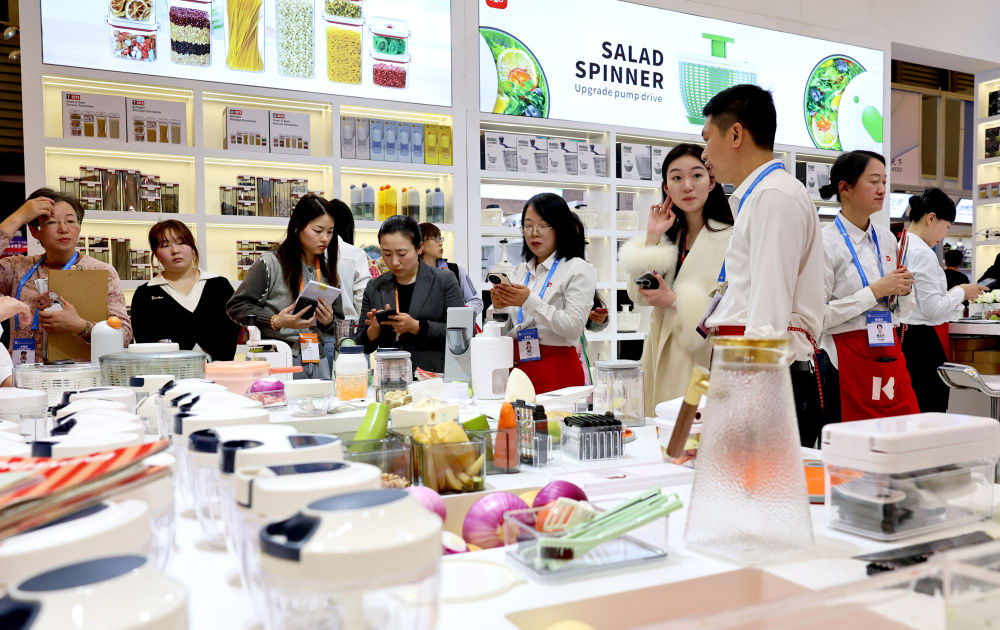 3月1日,第33届华东进出口商品买卖会正在上海揭幕。图为人们正在第33届华交会一处家庭用品展位交换。记者 方喆 摄!